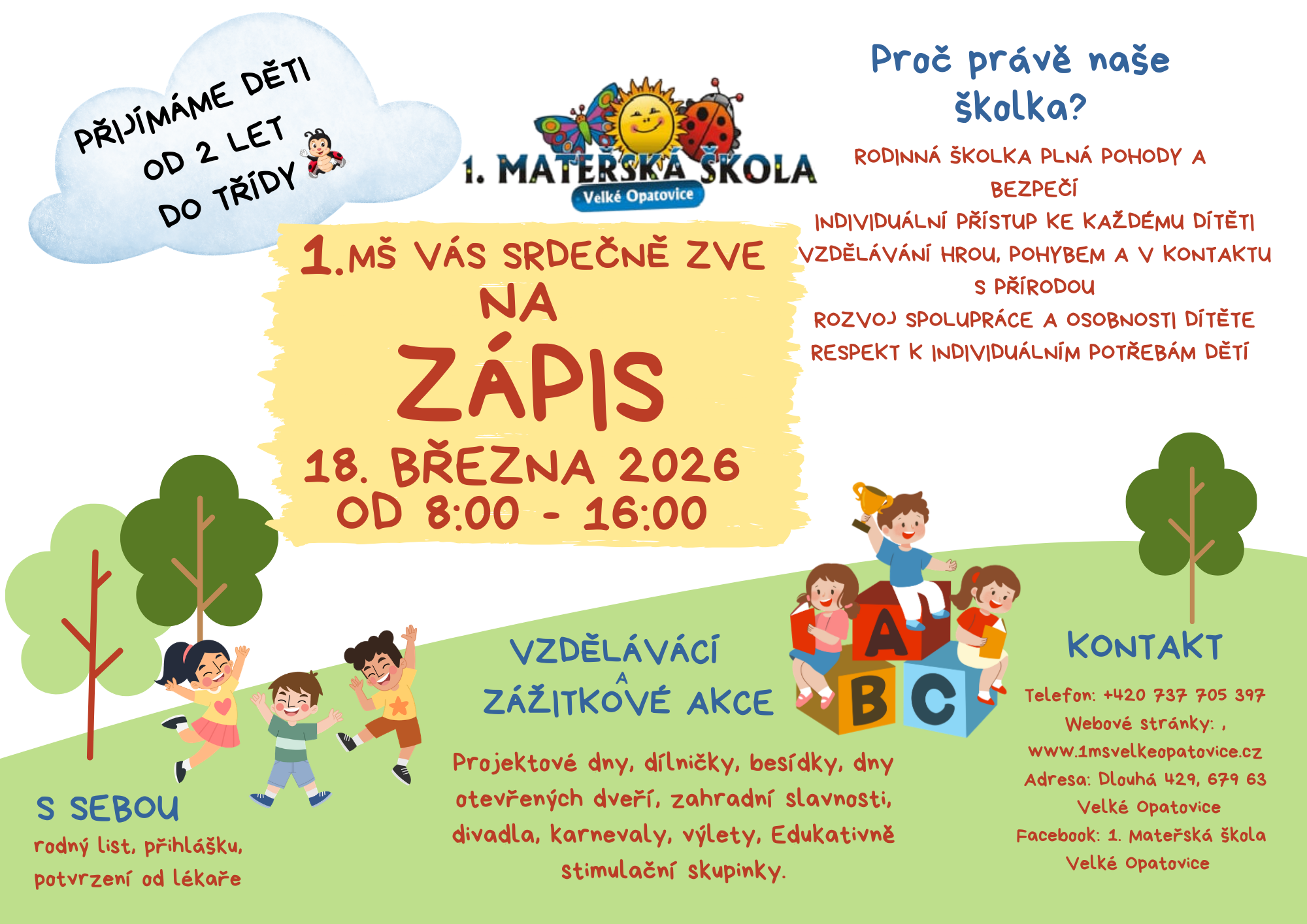 Pozvánka - Zápis do naší MŠ 18. března 2026